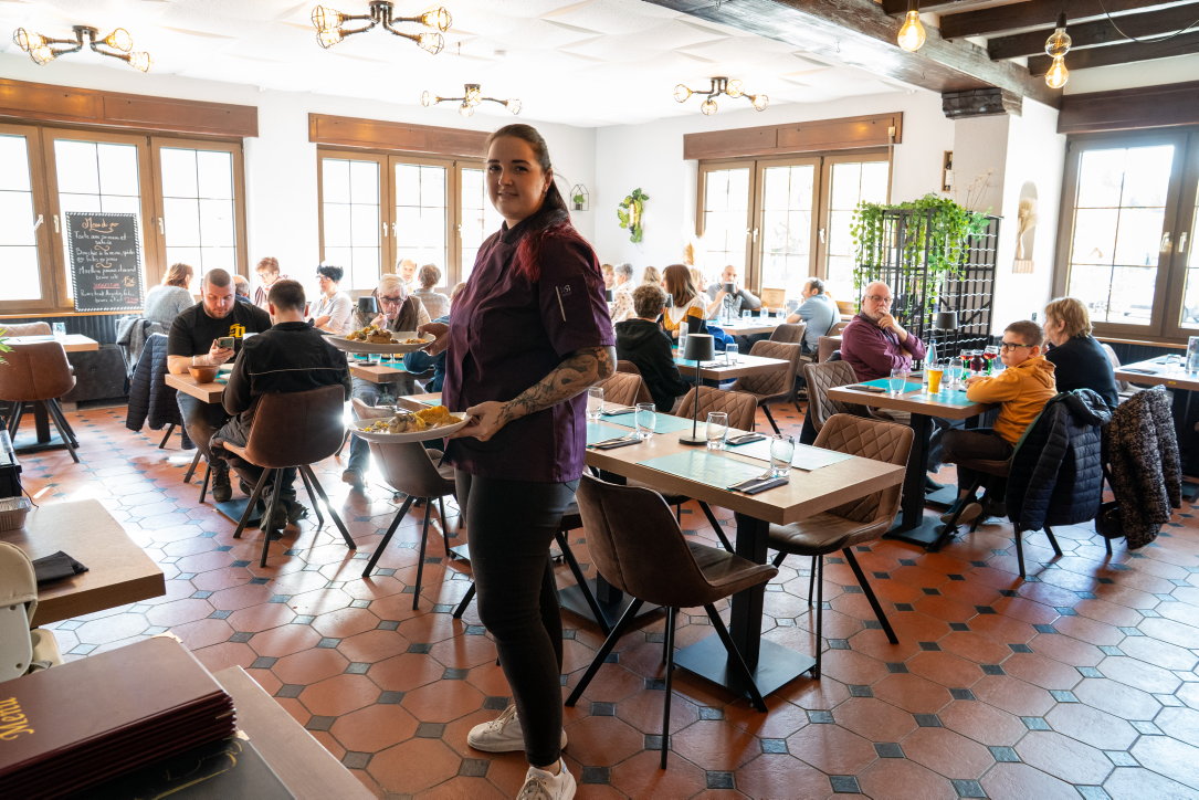 Adeline Thill begrüßt uns und erzählt mir die Geschichte ihres Hauses: „Am 31. Oktober dieses Jahres waren es vier Jahre, dass wir die ,Auberge Lorraine‘ führen. Mein Mann hatte einen Unfall im Wald und musste seinen alten Job aufgeben. Er machte eine Umschulung zum Koch und wir kauften das Haus hier. Ich habe zuvor im Casino von Niederbronn gearbeitet.“ Der Zufall wollte es, dass das Betreiber-Ehepaar, das vor ihnen das Haus bewirtschaftete, die Rente anstrebte und das Haus gern verkaufen wollte. Bei diesen beiden waren auch Adeline Thill und ihr Mann Loic Garcia selbst gern zu Gast. Zu dieser Zeit war das Restaurant noch etwas kleiner, nebenan gab es noch eine Metzgerei. Heute ist Loïc der Metzger für das eigene Restaurant. „Ich habe schon immer die Küche geliebt. Wir lebten auch ein rurales Leben, mit Schweinen auf unserem Bauernhof. Natürlich habe ich die Schweine auch geschlachtet und daraus gute Gerichte und Wurst gemacht“, erzählt Garcia.