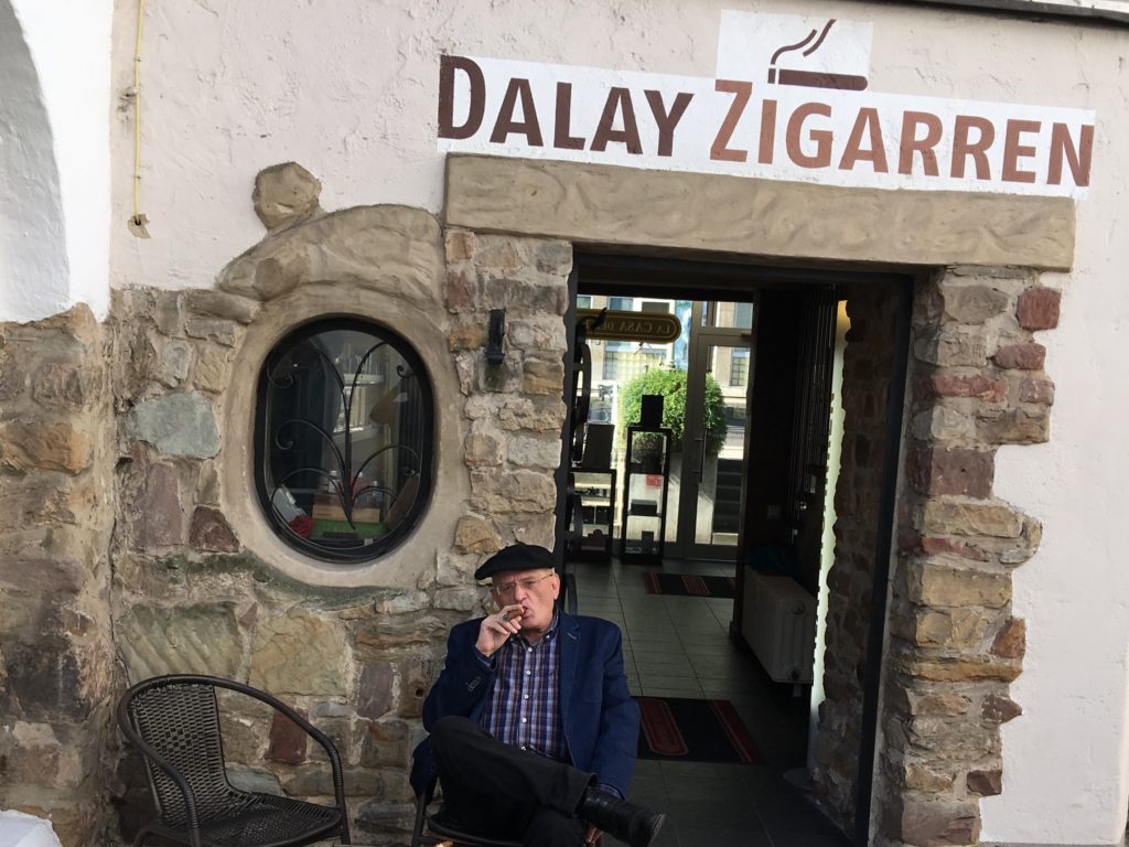 Warum? Viele Kunden könnten natürlich online bestellen, doch Salih pflegt seine Kunden, freut sich immer auf ein Gespräch über sein Lieblingsthema! So stand ich die Tage da und zwei Stuttgarter betraten den Laden, fragten dies und das, tranken einen kleinen Rum und bestellten. Der Eine ging mit 12 Kisten nach Hause, der Andere mit 15! Das machen viele Kunden so, reisen am Vortag in Saarbrücken an, gehen am Vorabend in ein ausgezeichnetes Restaurant essen und am nächsten Morgen zu Dalay Zigarren kaufen!