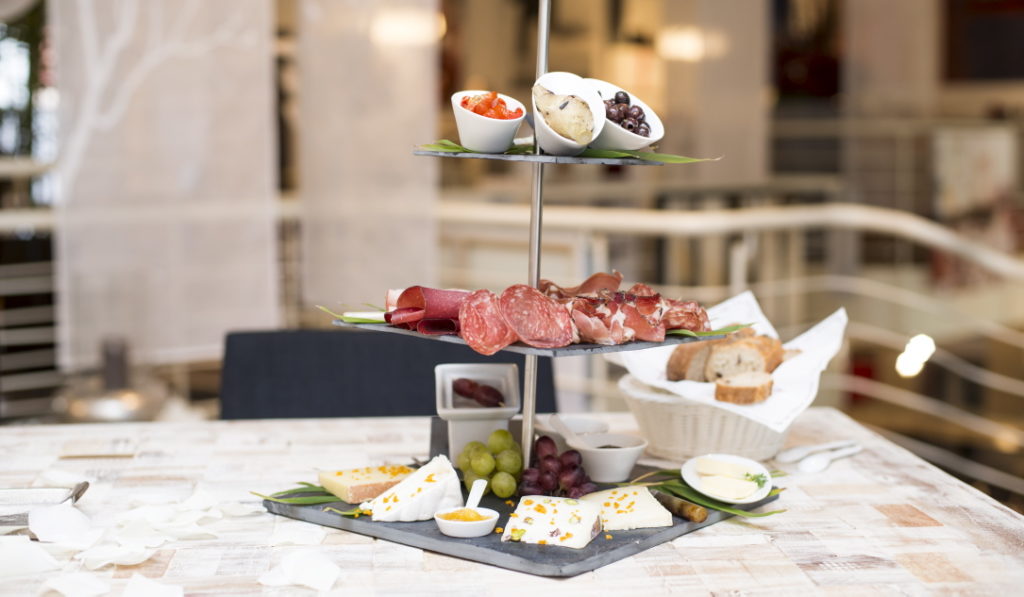 An der Antipasti-Theke finden die Kunden zahlreiche Spezialitäten, die im Hause selbst hergestellt werden. Das beginnt morgens mit Frühstücksspezialitäten und zieht sich mit einer Vielzahl hochwertiger Produkte auf herrlichen Etageren bis zum frühen Abend. Das „Miori“ ist fraglos eines der schönsten Feinkostgeschäfte weit und breit.