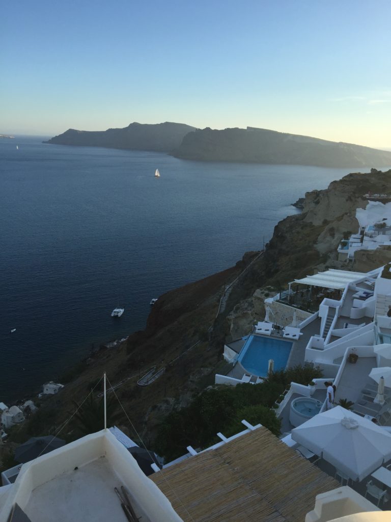 Von denen man atemberaubende Aussichten hat. Nach Oia kommen viele Menschen aus aller Welt, um zu heiraten. Vor allem Asiaten, denen diese Kulisse die ideale zu sein scheint, um diesen einmaligen Tag zu begehen. Oder wegen des Sonnenuntergangs, wenn die Sonne im Meer versinkt und den Himmel in ein goldenes Licht verwandelt.
